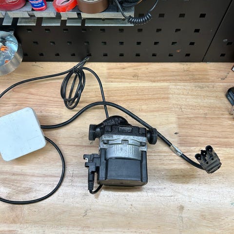 Kiertovesipumppu on Ahlsellin oma merkki. Pumppu on käyttämätön. Voin käyttää sähköjä päällä ja testata, että toimii.