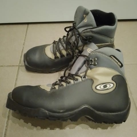 Ehjät, napakkakuntoiset Salomon monot kokoa 38. Menevät SNS-siteisiin. Yksi mehutäplä näemmä on muistoksi jäänyt toisen monon sisäsyrjälle.