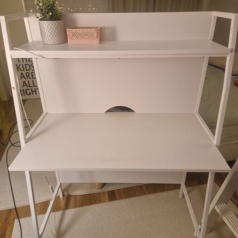 Hyvä työpöytä joka toimii moitteettomasti. Erittäin hyvä pienelle tilalle varsinkin, kun pystyy vetää ylimääräisen taso ulos.