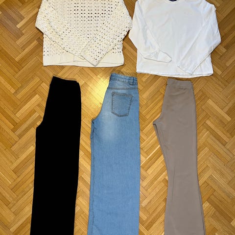 Vaatepaketti tytölle 146/152 cm, kolme paitaa, kolmet housut, pyjama.