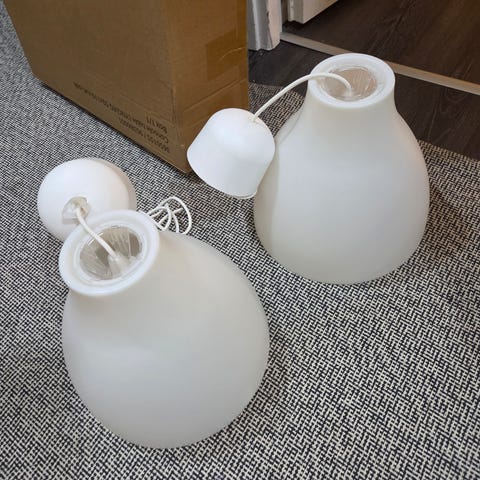 Myydään valkoiset riippuvalaisimet 40 cm ja 50 cm