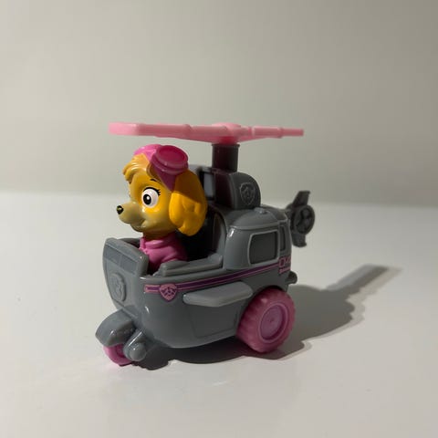 Ryhmä Hau Kaja ja helikopteri. Paljon leikitty ja kulumaa jo on.
