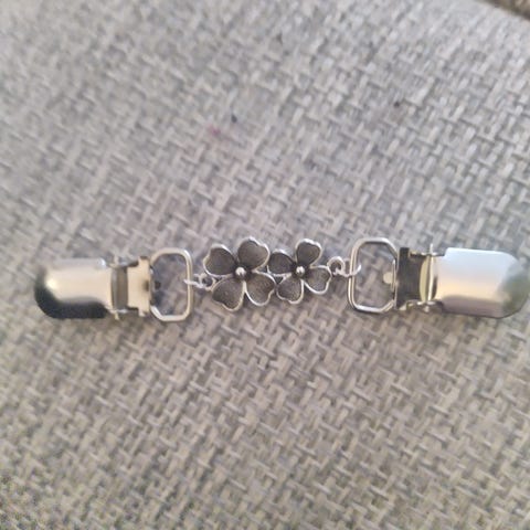 Klipsu jolla saa neuleen kiinni jossa ei ole nappeja.