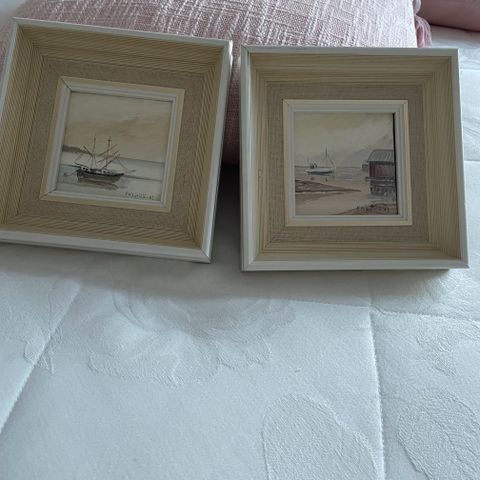 Vabha tunnettu aihe satamasta, jossa kala-/wiskitynnyureitä, Arkin koko K 34 cm, L 43 cm. Hinta 40e.
