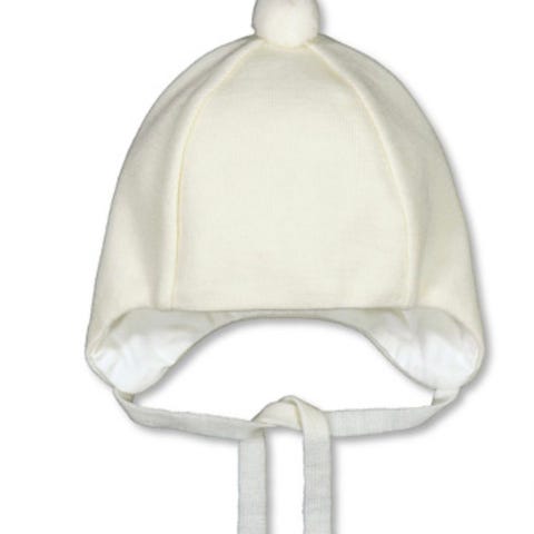 Itse neulottu, käyttämätön, merinomyssy korvaläpillä ja solmimisnaruilla Emma Sippolan Takatalvi-ohjeella. Sopii n. 4-6 kk ikäiselle. Lanka Drops Merino Extra Fine.