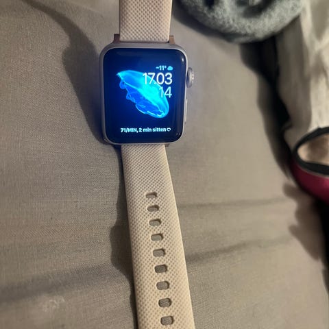 tästä seuraavalle omistajalle hyvin toimiva älykello kello taulun koko on suunniteltu hiukan pienempään ranteeseen sillä kello rungon koko on 38mm toki kelloa voi käyttää myös isommassa ranteessa. kello on ollut päivittäisessä käytössä itsellä 6kk ja toiminut ongelmitta. uuden kellon tultua kello on jäänyt viimeisen kk aikana vähälle käytölle. pieniä käytön jälkiä löytyy mutta ei suurempia. mukaan saa latauspiuhan sekä hengittävän rannekkeen joka kuvissa näkyy