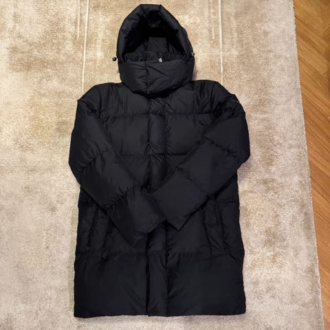Noin puoli vuotta vanha, vain muutamia kertoja käytetty laadukas ja erittäin lämmin untuvatakki. Täytteenä 100% vastuullisesti tuotettua untuvaa. Tyylikäs pidempi malli suojaa hyvin myös jalkoja.