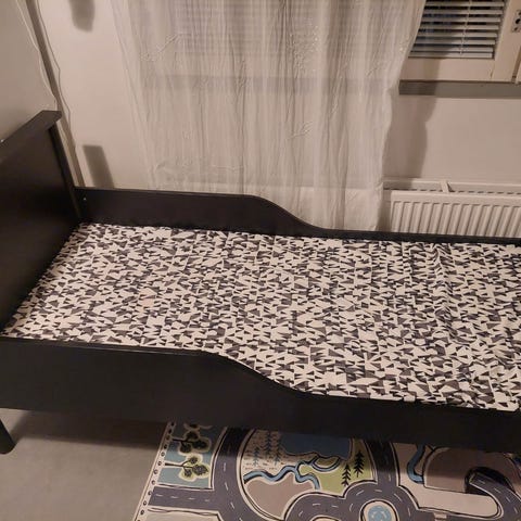 Sänky valmiiksi purettuna, kaikki osat mukana.
