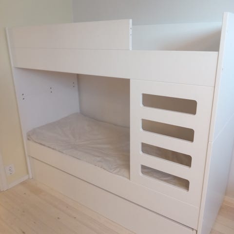 IKEA Kerrossänky lastenhuoneeseen. Kerrossängyssä on metallirunko ja tikkaat yläpetiin. Sopii lasten huoneeseen tilaa säästäväksi nukkumisratkaisuksi.