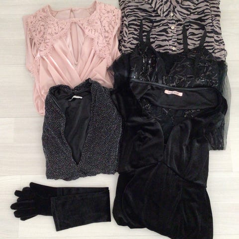 - H&M harmaansininen laskostettu mekko, koko S. Vyötäröllä nauha. Metalliosissa värimuutosta.