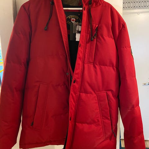 Buratti-merkin miesten punainen talvitakki. Erittäin hyväkuntoinen, ollut vain pari kertaa käytössä. Vetoketjutaskut sivuilla. Povitasku. Hupussa kiristysnauha x 2. Hihansuissa resorit. Nouto tai postitus.