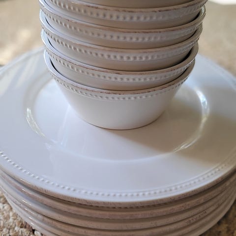 Lähes käyttämättömät, tyylikkäästi muotoillut kulhot aluslautasineen näyttävään tarjoiluun - erinomaiset keittoihin, alkusalaatteihin, tarjoiluun tai muihin näyttäviin kattauksiin!