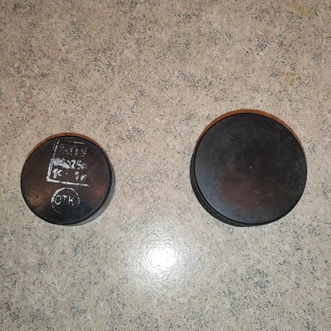 IFK:n Kiekko kultaisella logolla. Ostettu viime vuonna, on hyvä koristeena ja varmasti jäälläkin.