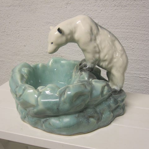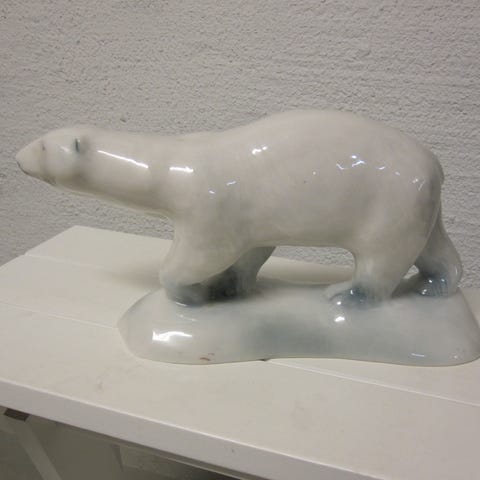 Pieni posliini jääkarhu patsas GDR. 1960-70 luku. Ei näkyy olevan paljon näitä myynnissä maailmalla.yhen löysin.