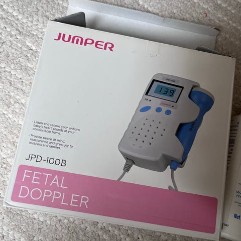 Myydään muutamia kertoja käytetty doppler, jolla kuunnella vauvan sykettä kotona. Mukana tulee vajaa pullo geeliä.
