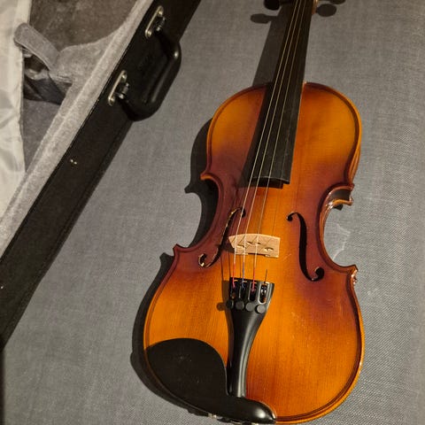 Harley Benton valkoinen sähköviulu. Ostettu noin 4 vuotta sitten, mutta soittoa on kertynyt ehkä 10-20h. Aivan uudenkarhea siis. Sama viulu myynnissä Thomannin sivulla nimellä Harley Benton HBV 870WH 4/4 Electric Violin.