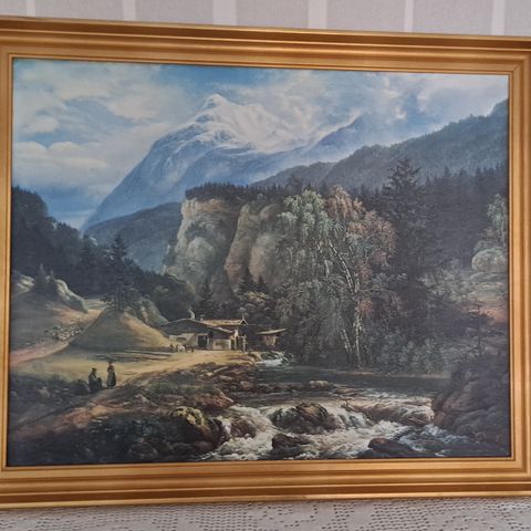 Alppimaisema, Sisustustaulu, vanha iso, 65 x 80 cm, mäntyraameilla
