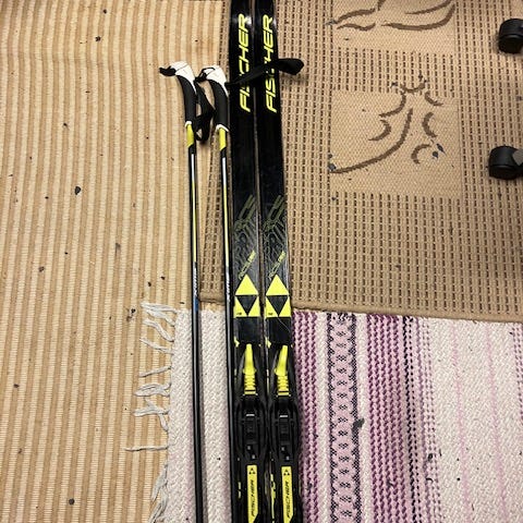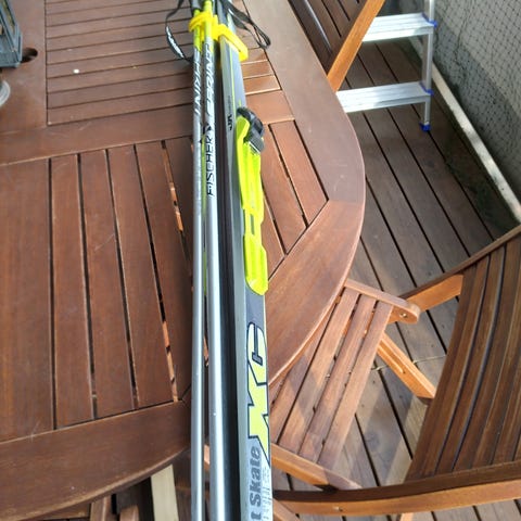 Vain lapsellani muutamia kertoja käytössä olleet NNN-siteistä sukset, niihin sopivat monot ja sauvat