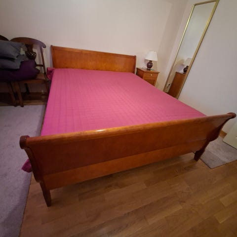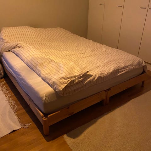 Myydään käytetty, mutta hyväkuntoinen sänky, koko 160 × 200 cm.