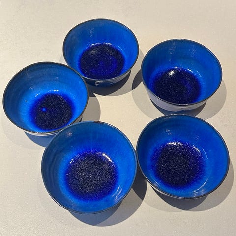 Astiasto, joka koostuu vihreistä keramiikka-astioista. Sarjaan kuuluu