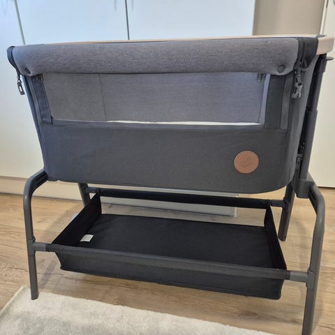 Hyvässä kunnossa oleva Moweo-vauvansänky huippuhintaan (uutena 179€)! Toimi loistavasti pienen vastasyntyneen kanssa, tyttäremme käytti sänkyä n 7 kuukauden ikäiseksi asti. Pyörät olivat loistavat; vauvan sai siirrettyä nukkuvana huoneesta toiseen. Toisen sivun laita avautuu, ja sängyn voi halutessaan kiinnittää vanhempien sänkyyn remmeillä.