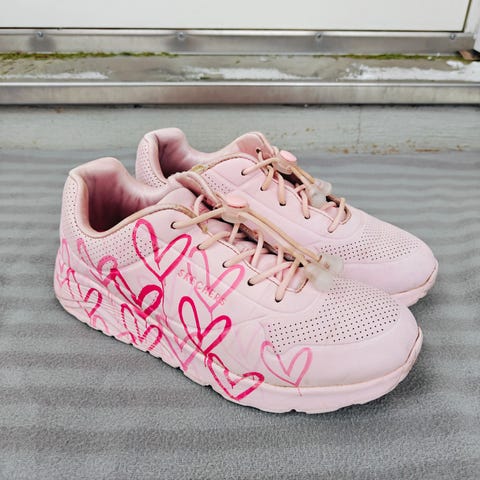 Skechersin Unot, Spread the love valkomustat tennarit Love wall -sydänkuosilla, myös sydännauhat.