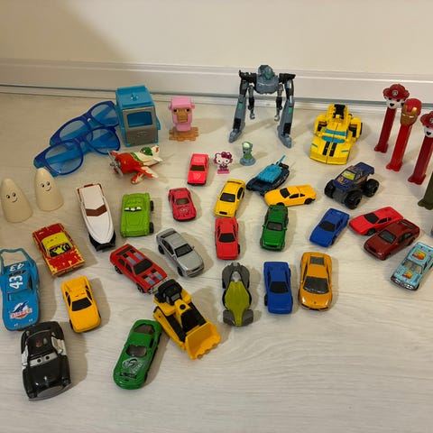 Pikkuautoja 43 kpl+muutama pienosa ja skeitti