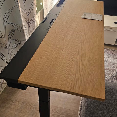 Kovassa käytössä ollut pöytä. Vielä hyvä esimerkiksi askartelupöydäksi. Meillä ollut tytön kynsientekopöytänä ja kynsilakkojen jälkiä pinnassa reilusti.