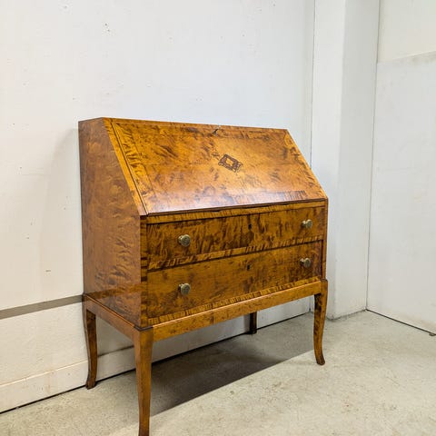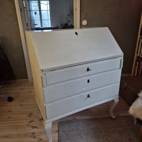 Kaunis klassisen tyylin omaava retro kirjoituslipasto myytävänä. Yleiskunto ikäisekseen hyvä. Avain tallessa ja lukitus toimii klaffissa. Rakenteeltaan lipasto kaikin puolin tukeva. Laatikot toimivat hyvin eikä ole hajuja.