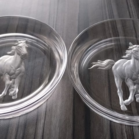 Maljoissa on Hoya‑lasille tyypillinen kohokuvioitu hortensia (ajisai) -koriste, joka heijastaa valoa upeasti ja sopii täydellisesti jäätelöille, marjoille, hedelmille, jälkiruoille tai pieneen tarjoiluun.