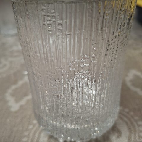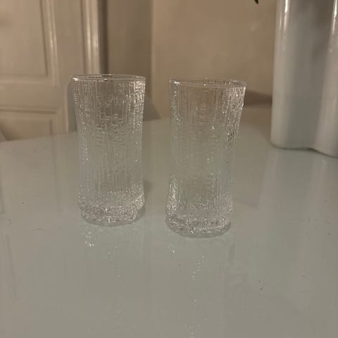 Iittala Ultima Thule kirkasta lasia, 3 kappaletta. Lasit ovat läpinäkyviä ja niissä on teksturoitu pinta, joka muistuttaa sulavaa jäätä. 25 euroa/kpl.Vanhempaa tuotantoa. Iittalan merkit lähteneet pois. Ei ole käytetty lainkaan.