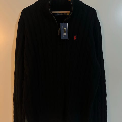 Ralph Lauren Villa miesten neule koko L, väri beige, materiaali villa. Neuleessa on puolipitkä vetoketju ja perinteinen palmikkokuviointi.