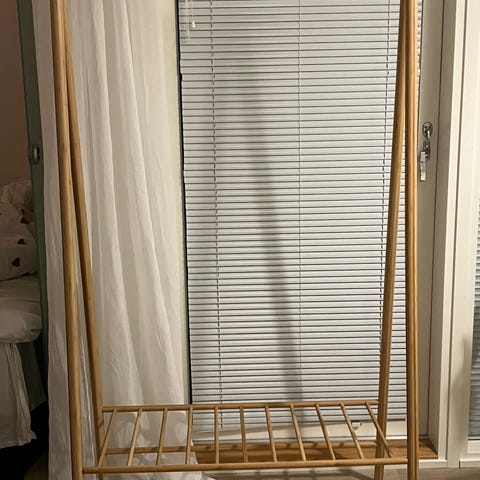 Jyskin vaaterekki ja yöpöytä/kukkapöytä.