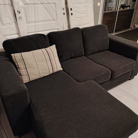 Myydään siisti ja hyväkuntoinen, n.5v. Vanha sohva. Koiratalous. Irrotettavat, pestävät päälliset.