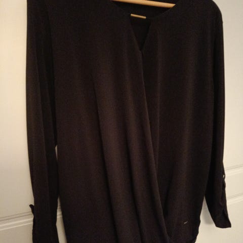 Hyväkuntoinen naisten musta trikoopaita. Mitat kai-kai 52 cm, niska-helma 70 cm.
