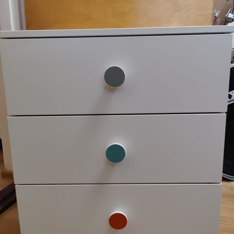 Myydään valkoinen Ikean lipasto. 5 laatikkoa. Ei renkaita (ilmeisesti Ikeasta voi kuitenkin ostaa).