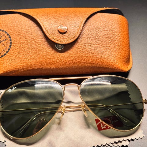 Nyt olisi tarjolla uutta vastaavat, todella tyylikkäät klassikko Ray-Ban Aviator -aurinkolasit, joissa on polarisoidut liukuvärjätyt sinertävän harmaat linssit. Linssien leveys on 62 mm, joka on Aviator-malliston suurin koko. Liksäksi linssien takapinnassa on heijastuksenesto. Laseja on käytetty vain muutaman kerran, eikä niissä ole mitään käytön jälkiä. Mukana tulee kaikki, mitä uutenakin tuli.