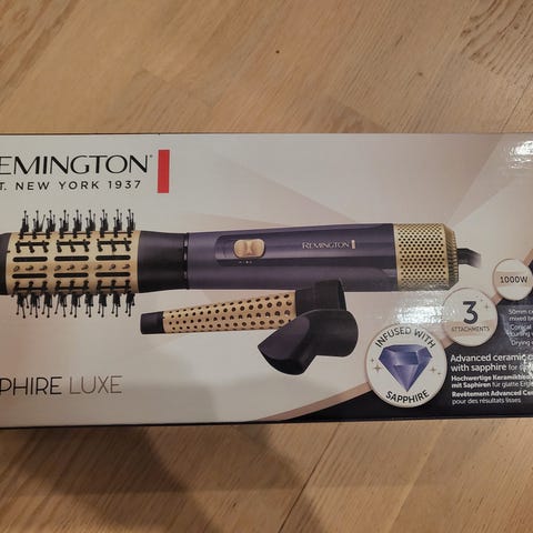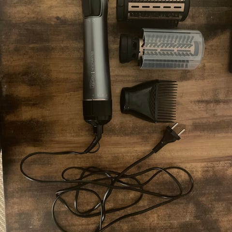 Remingtonin Curl and Straight confidence rotating air styler. Käytetty vain pari kertaa, joten erittäin hyvässä kunnossa. Puhdistettu käytön jälkeen. Toimii moitteetta.