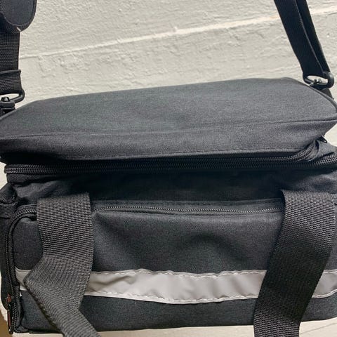 Hyväkuntoinen musta keinonahkainen Emmaljunga hoitolaukku