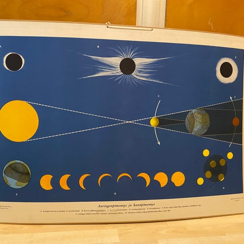 Auringonpimennys ja kuunpimennys opetustaulu / koulutaulu