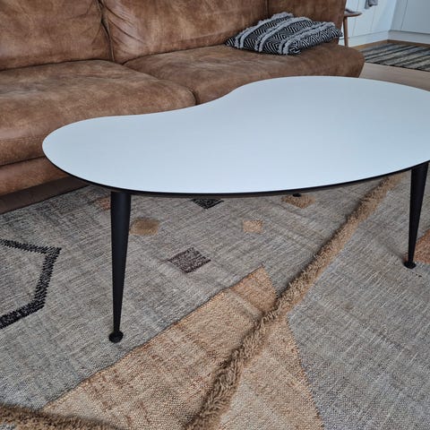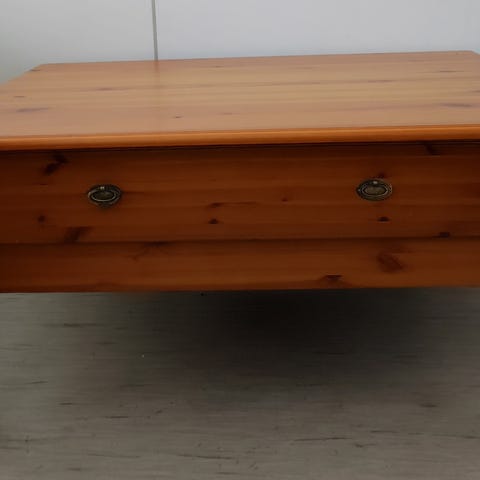 Vuonna 2017 hankittu sohvapöytä. Käytön jälkiä pöytälevyn pinnassa. Pöytälevy täyttä puuta, joten voi hioa ja kunnostaa.