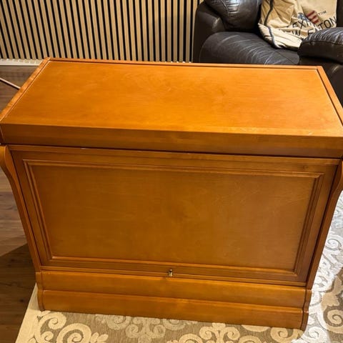 Kuvan vaaleam ruskea Billnäs vitriini hyvässä kunnossa. Näitä on kaksi samanlaista, toinen Turussa ja toinen Porissa. Sokkeli on laatikollinen versio. Hinta kuvan kokonaisuudelle 4 kpl vitriinejä ja sokkeli.