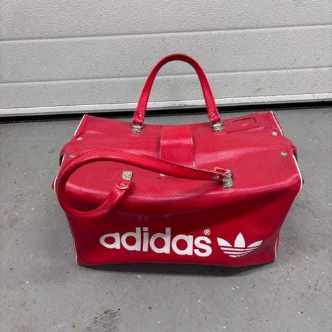 Vanha Adidaksen vintage kassi. Kymmeniä vuosia vanha jo, mutta yllättävän hyvässä kunnossa pysynyt. Käytössä ollut, mutta nyt jo pidempään ollut käyttämättä. Pinnassa kulumaa, toiselta puolelta pitkän hihnan lenkki lähtenyt. Tilalla pieni reikä, mutta huomaa kun venyttää taskua. Laukussa ei pitkää hihnaa enää olekkaan. Vetoketjut toimii ja mitään suurempia vikoja ei ulkopuolella ole. Sisäpuoli muuten siisti, mutta pohja pahvi puoliksi irronnut ja muutenkin vähän kärsinyt. Voi halutessaan irrottaa myös. Kunto näkyy kuvissa. Harvinainen malli, oikea vintage aarre.