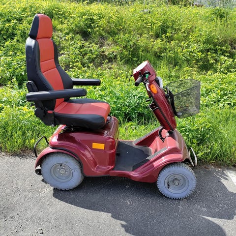 Ylimääräiseksi jäänyt seniori scootteeri muuten virheetön paitsi etukatteessa pieni osuma näkyy kuvassa. Akku hyvässä kunnossa ja laturi tulee mukaan totta kai.
