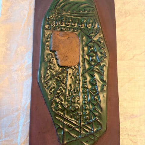 Aiteilija Kaarina Tarkan Pronssivalu reliefi kolme sisarta 1975. Nouto Hki Kannelmäki.