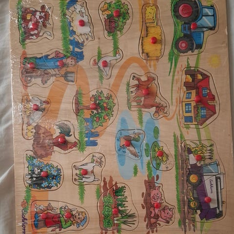 Myydään hyväkuntoinen nuppipalapeli. Keskellä liikuteltavat viisarit. Auttaa opettelemaan kelloa.