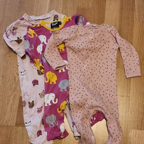 Myydään hyväkuntoiset pyjamat kokoa 68 (Mywear, H&M ja kaksi Lindexin yöppäriä).