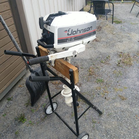 Keskimoottoriveneen laitaan tuleva ruori/vaijerirumpu sekä peräsimen akseliin tuleva kolmion muotoinen osa.