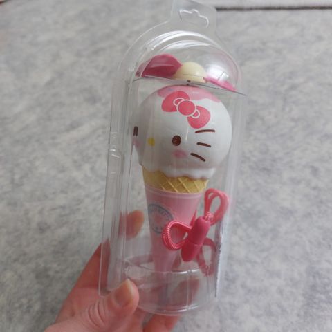 Vintage kädessäpidettävä Hello Kitty tuuletin avaamattomassa pakkauksessa. Paristokäyttöinen, sisältää kaksi hajustenappia jotka on tarkoitus laittaa tuulettimen sisään puhaltamaan tuoksua ilmaan. Seisoo pystyssä pitämättäkin.