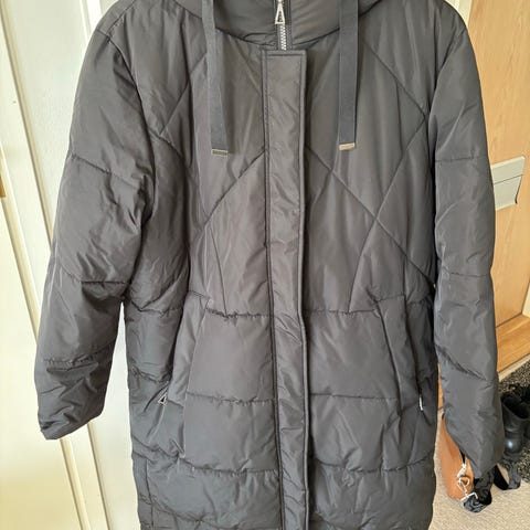 Koko: M. Ensimmäinen kuva otettu salamalla ja näkyy takissa pieni jälki (salamalla näyttää pahemmalta kuin on). Toinen kuva ilman salamaa. Jälki on musta. Ilmeisesti jokin kuuma/kipinä osunut siihen, ei ole reikä. Kainalo ulkopuolelta helppo korjata. Tarjoa.
